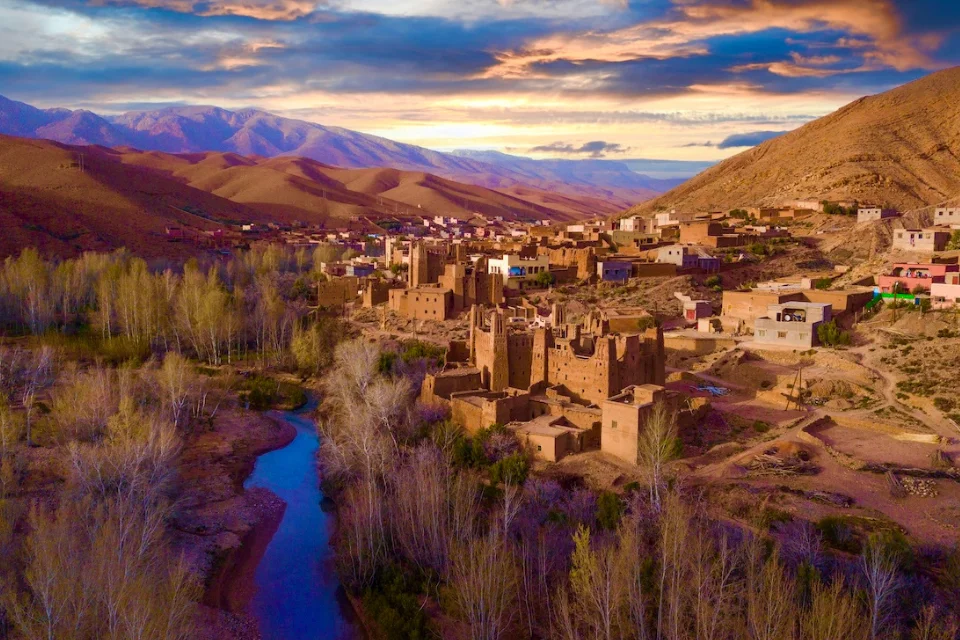 In the afternoon, the journey continues toward the beautiful Dades Valley, known for its dramatic rock formations, green riverbanks, and picturesque villages nestled between rugged hills. Upon arrival in Boumalne Dades, you will check into a charming traditional riad, where you can relax, enjoy dinner, and spend the night in a peaceful mountain atmosphere.