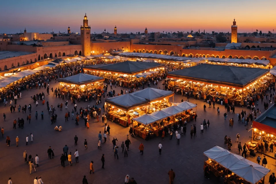 After breakfast, enjoy a guided tour of Marrakech with a certified local guide. Discover the historical heart of the city: Jemaa el-Fna Square, Koutoubia Mosque (outside), Bahia Palace, and Saadian Tombs.